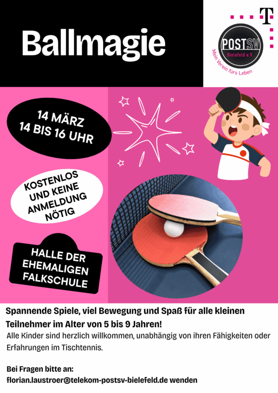 14Mär Bewegung, Spaß und Magie rund um den kleinen weißen Ball! Beim „Ballmagie“-Event des Telekom Post SV Bielefeld, welches wir nun zum zweiten Mal… Am Samstag, 14. März 2026, 14 Uhr